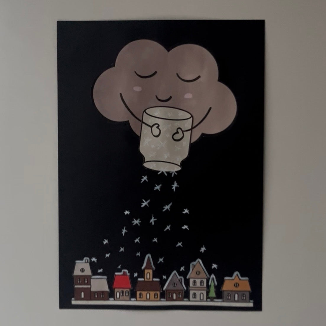 Deze printable bevat alle onderdelen die je nodig hebt om de ze knutsel te kunnen maken; de huizen, het wolkje enger potje.